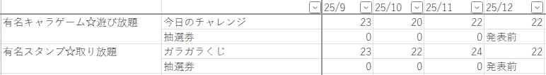 「有名キャラゲーム☆遊び放題」と「有名スタンプ☆取り放題」の獲得ポイント実績