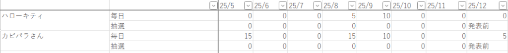 - 抽選に参加しなくても、「毎日カピバラさん日誌」コーナーを遊んだ時点で「1日」としてカウント