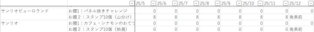 「サンリオピューロランド」と「サンリオ」の獲得ポイント実績