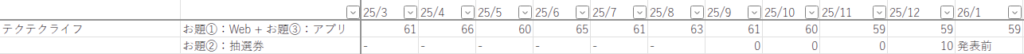 お題②の抽選結果は、4ヶ月中で1回だけ10ptの当選がありました!