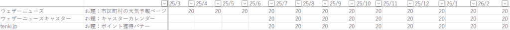 「ウェザーニュース」と「ウェザーニュースキャスター」と「tenki.jp」の獲得ポイント実績